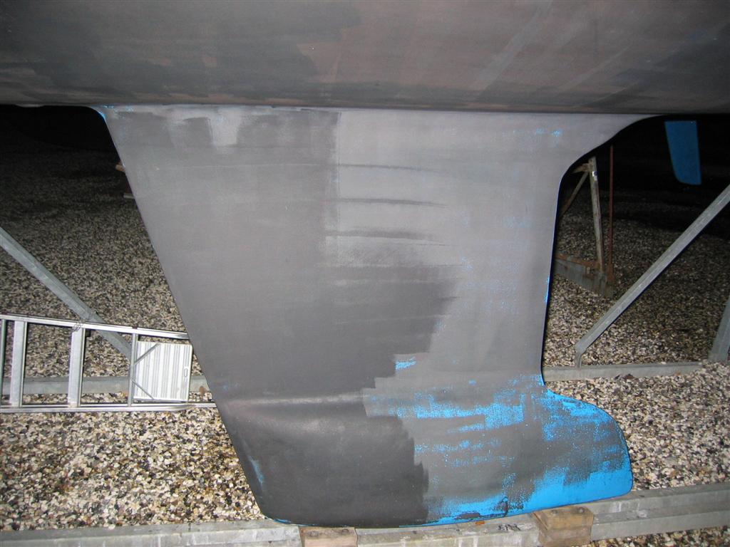 - 1 ekstra lag sort eller "true blue" bundmaling på de udsatte steder (vandlinie, ror og skarpe kanter på kølen)
