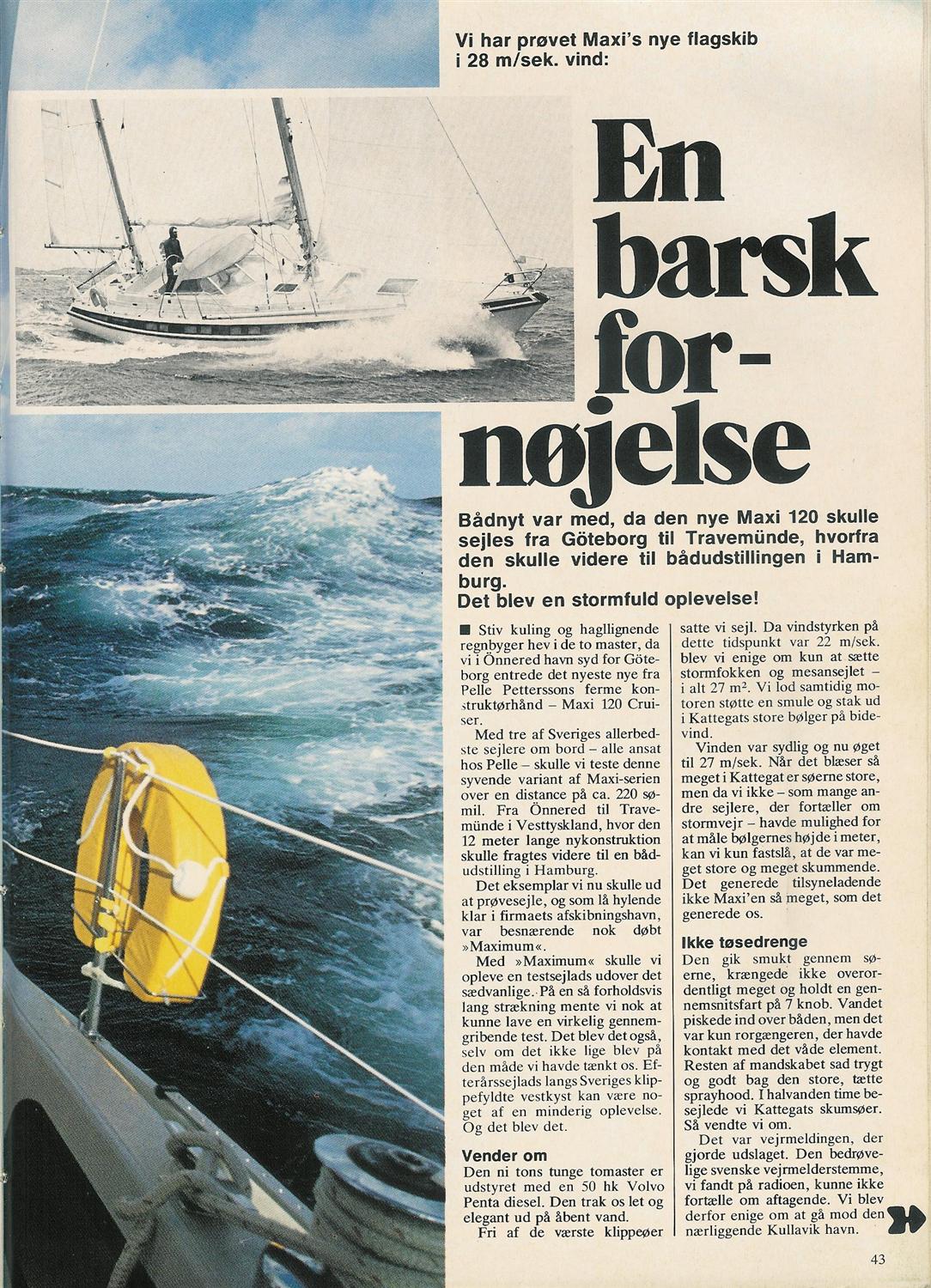 Den overskrift brugte Bådnyt da de i December 1977 bragte en 3 sides beskrivelse af en prøvesejlads i Maxi 120. Heldigvis refererede den til vejret og ikke båden; som klarede kulingen flot.