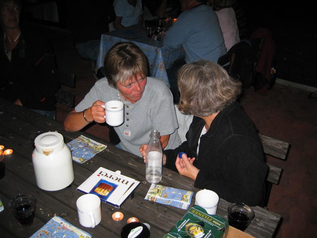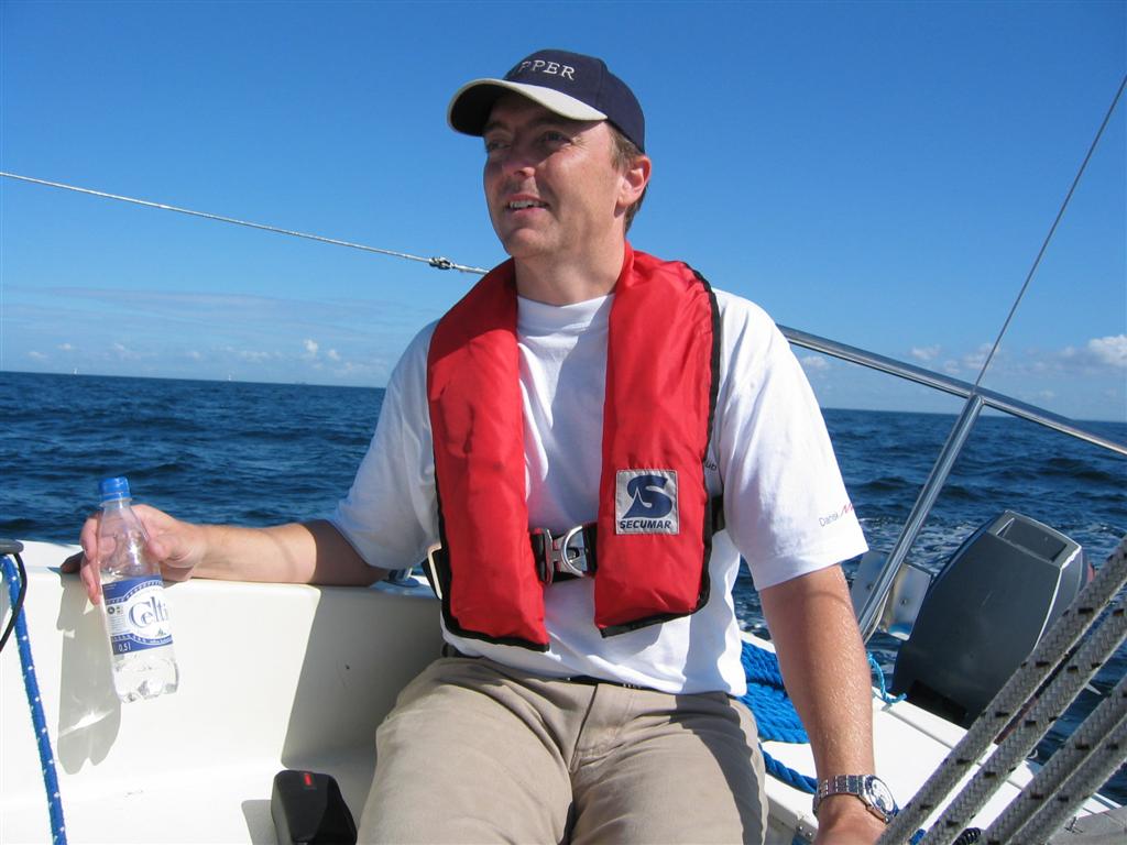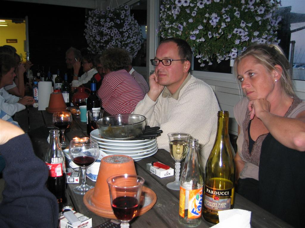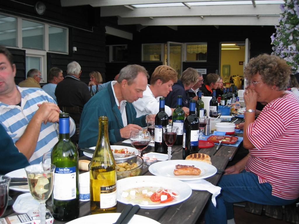 På vejen hjem kom der nogle store sorte skyer, og pludselig gik der hul på dem og vi blev gennemblødte. - det gjorde dem af vores Maxi kammerater der sejlede på dette tidspunkt også !Sidst på eftermiddagen mødtes vi til molebajeren og talte om vores sejlture. Nogle var kommet i bil, men der var alligevel mange fremmødte der var sejlet i det herlige friske vejr, og det gav anledning til en masse gode historier.