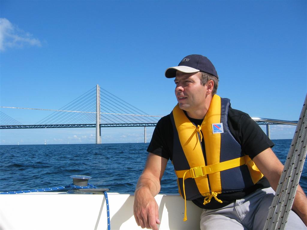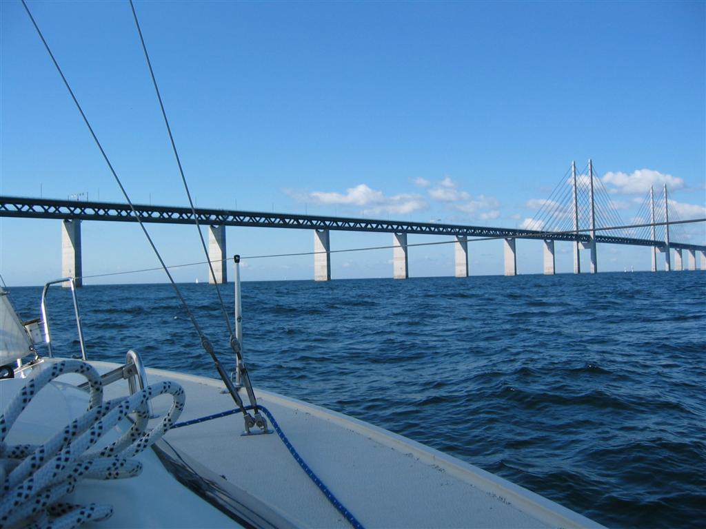 Vinden tog til, men vi besluttede kun at holde det ene reb i storsejlet, da vi følte vi havde godt styr over sagerne. Det gav os nogle surf ture da vi gik nordpå i farvandet omkring Øresundsbroen.