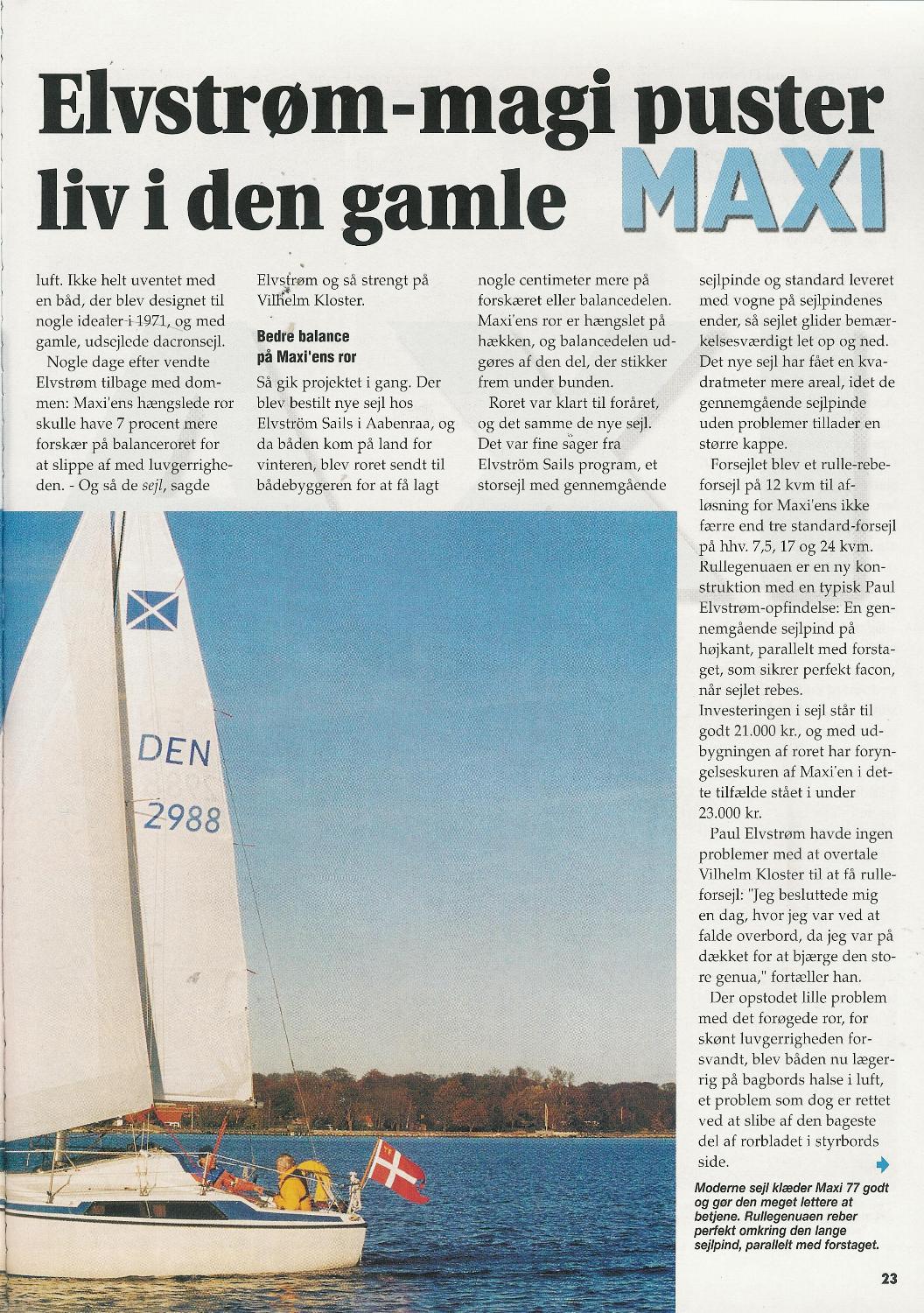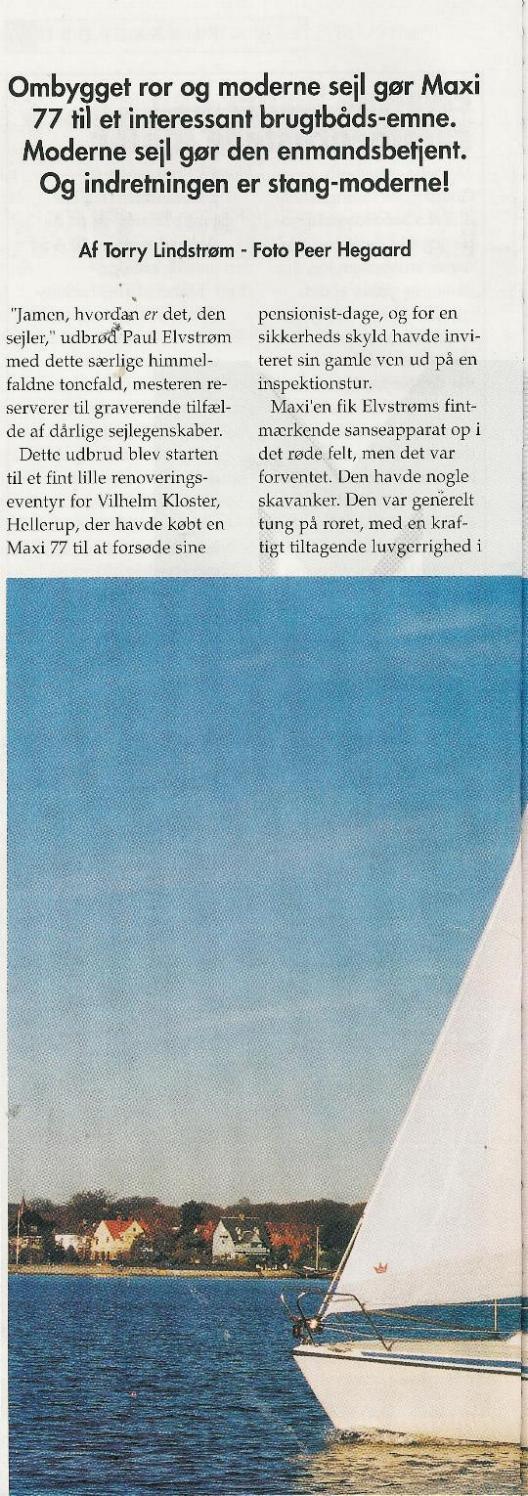 "Bådmagasinet" bragte i marts 2002 en beskrivelse af hvordan Elvstrøm ombygger en Maxi 77.Svend Brandt Jensen og jeg har scannet den og bringer den nu på MAXImalt.dk. - så du sparer turen på biblioteket. De scannede artikler er selvfølgelig ikke helt samme kvalitet som i det originale, men det kan vist godt læses.Klik på siderne for at se dem i en "stort set læsbar" opløsning....