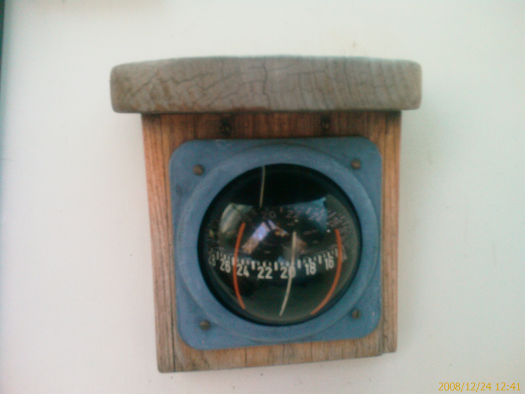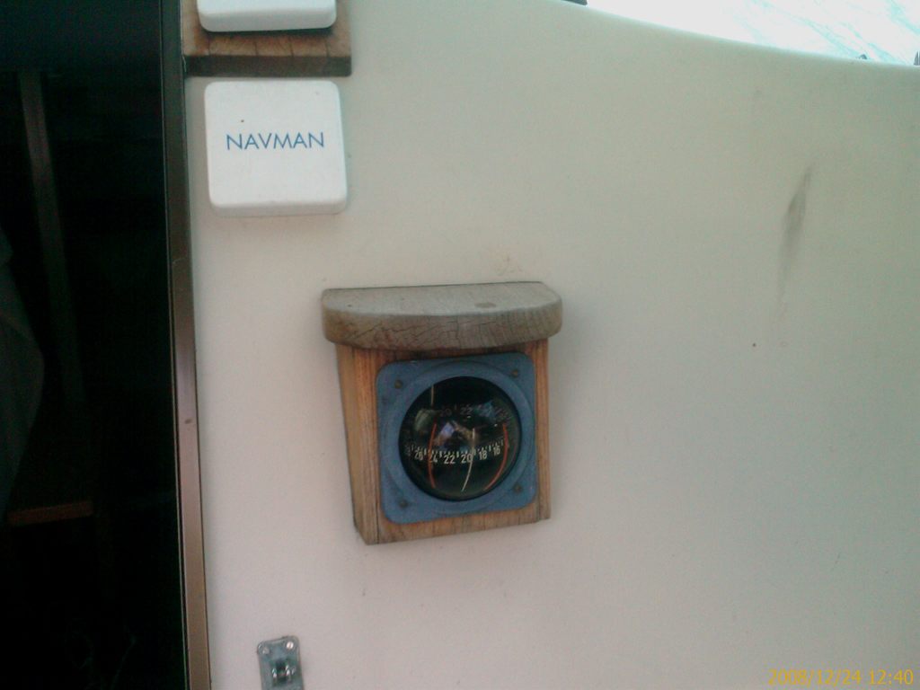 Da jeg købte min MAXI 77 var der allerede monteret kompas som du beskriver. Det er blot nogle teak plader der er savet til og tilpasset ”trin brædtet” som man bruger til at komme på dæk.