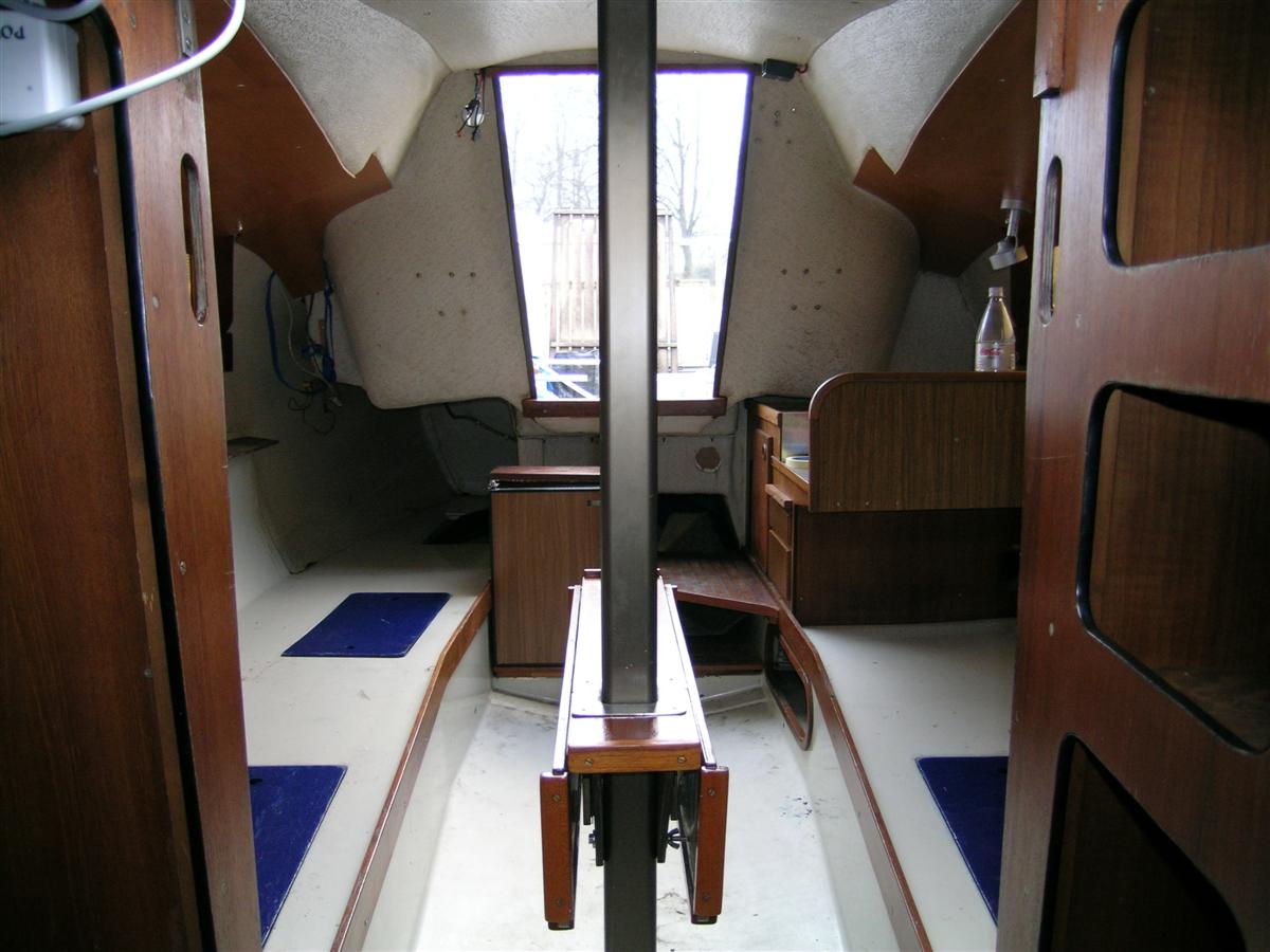 Jeg har desværre ingen gode billeder fra bådens indre - kun et enkelt taget om foråret før klargøringen. Når det bliver varmere i vejret, vil jeg meget gerne tage flere billeder af de forskellige detaljer der er lavet i båden.