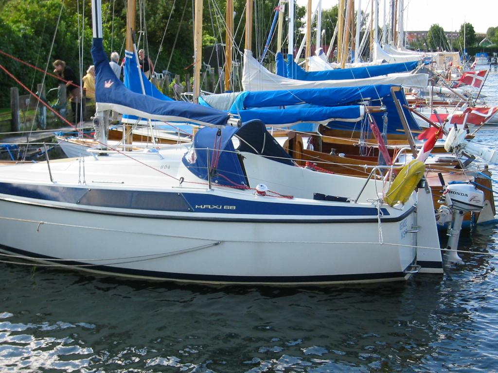 En Maxi 68 er egentligt ikke beregnet til at have monteret en påhængsmotor. Har man som Jeg både en motor og 10 liter benzin i den indenbords tank (som er placeret i kistebænken i styrbord side) så ligger båden tungt i agterenden. Lægges dertil et par personer, så oplever jeg ofte at vandspejlet når op til midt på drænrøret fra cockpittet.