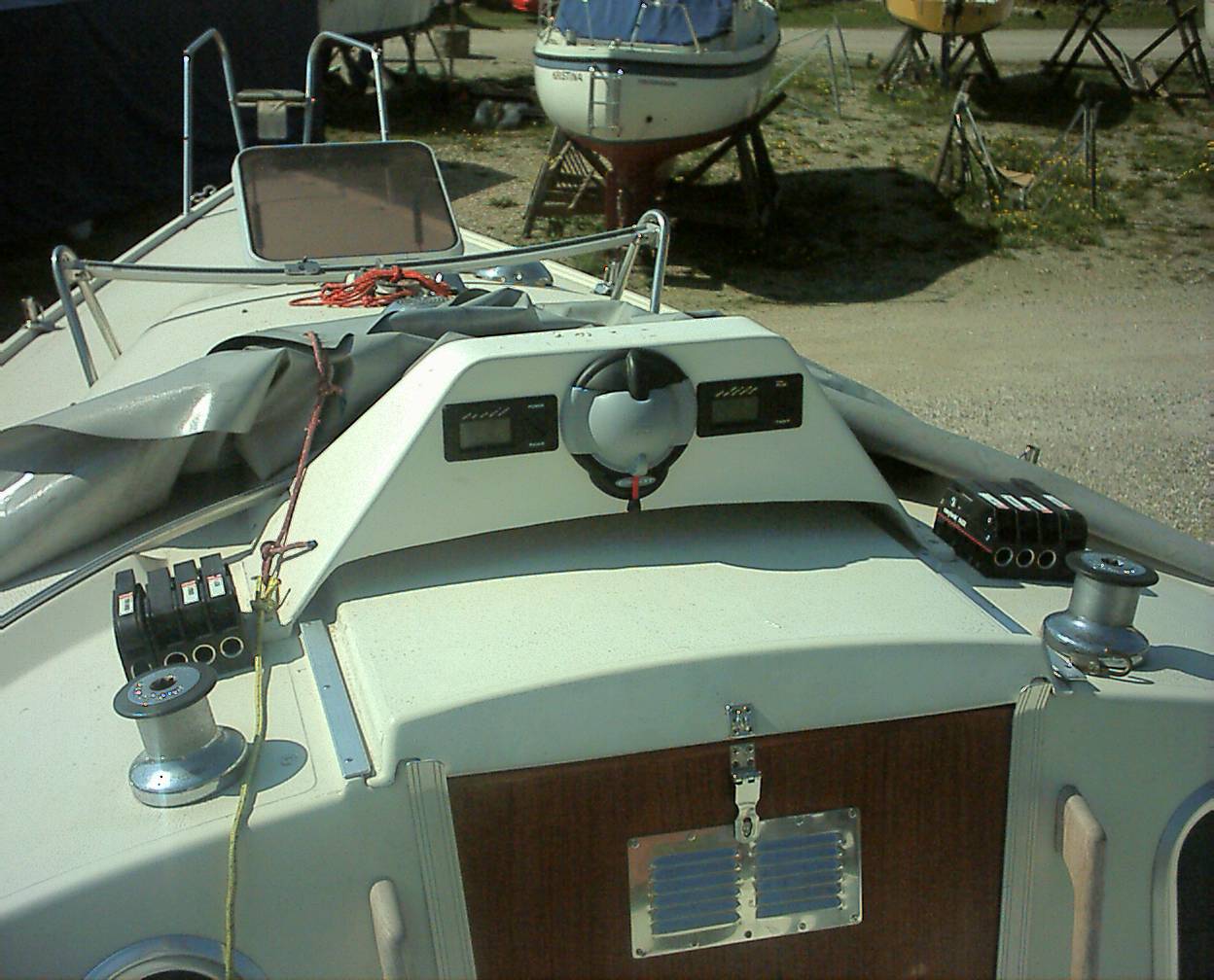 Jeg har lavet en støbeform til en instrumentbox der sidder over nedgangslugen på min fenix, der har jeg kompas log og lod siddende i og gps sidder oven på instrumentboxen. Den er lavet sådanne at det er box som du skærer til og sætter bund i og så skærer du huller i den til de instrumenter som du skal have. den er selvfølgelig lavet i glasfiber og med samme farve som båden. Jeg skal prøve at finde et billede hvis det har nogen interesse. Hvis du har forstand på glasfiberarbejde kan du låne formen.